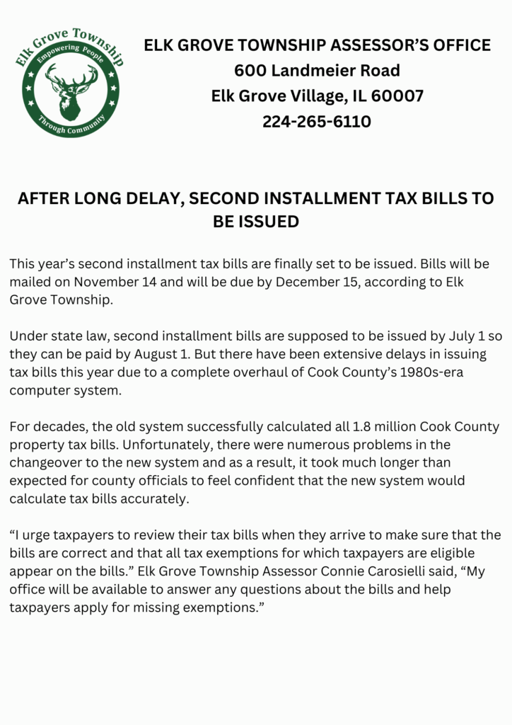 AN IMPORTANT NOTICE FROM ELK GROVE TOWNSHIP ASSESSOR, CONNIE CAROSIELLI: